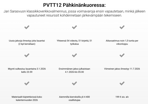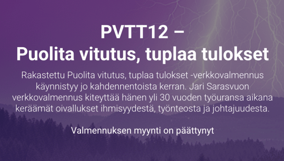 Ette voi enää tähän kertaiseen valmennukseen liittyä. Myynti on jo lopetettu.