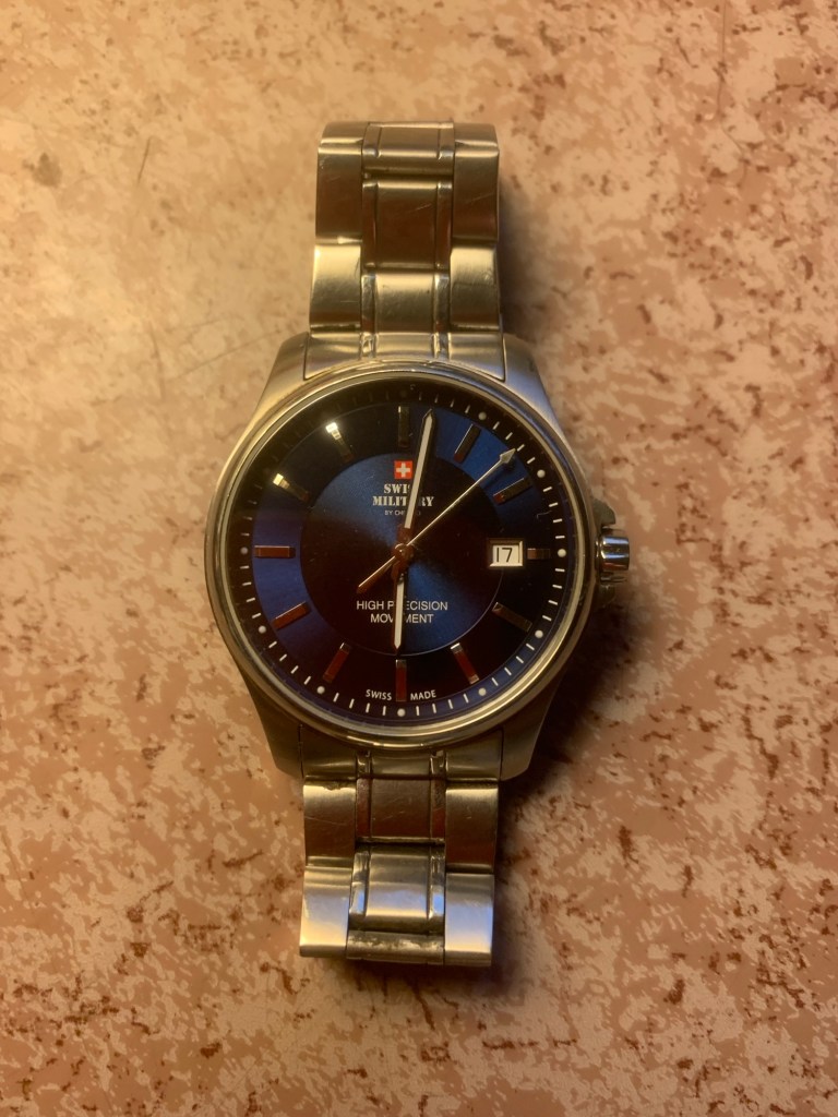 Kuriositeettinä mennessäni töihin Alppimajaan ostin itselleni töihin rannekelloksi Sveitsin armeijan kellon.
